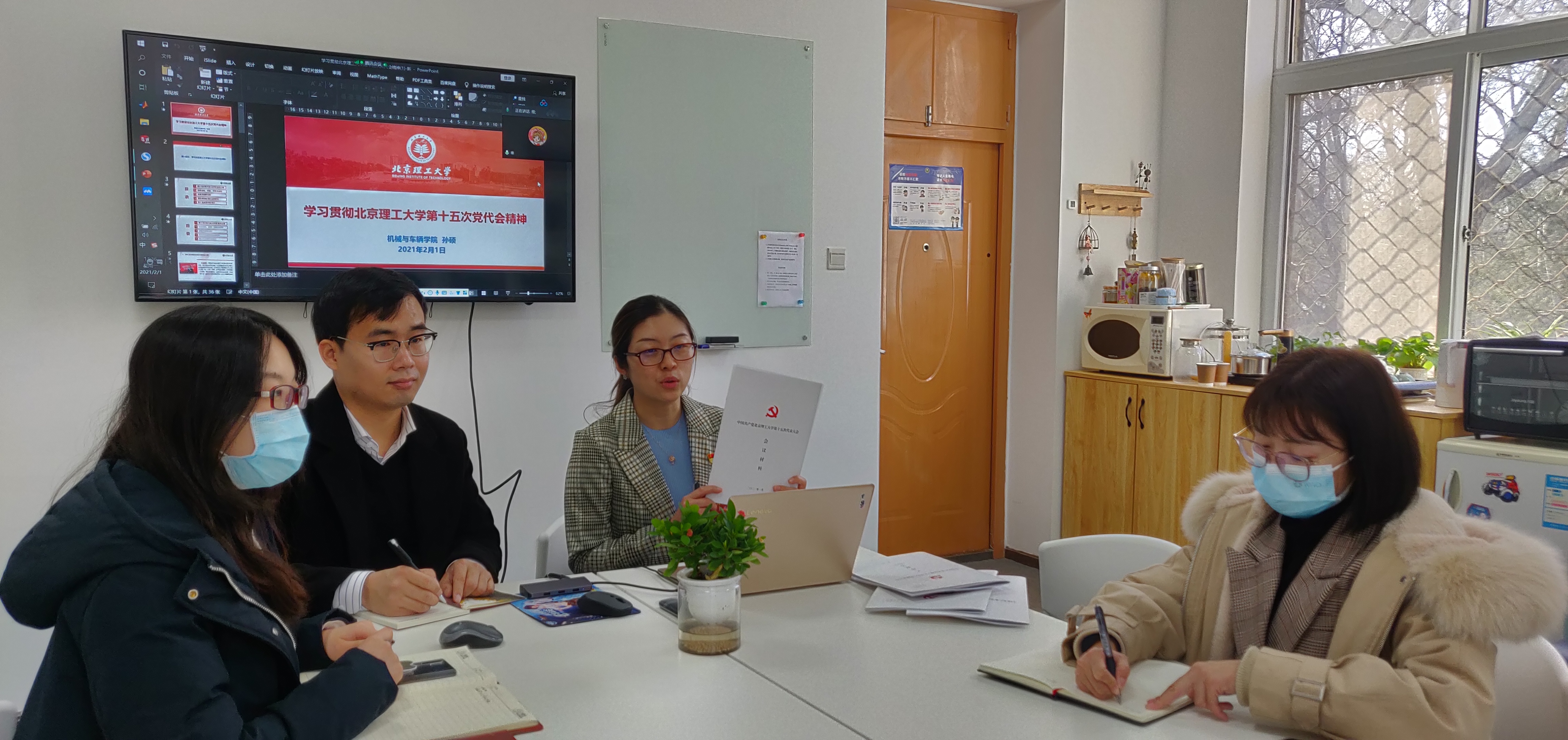 党代表参会的基本情况,然后从大会背景及主题、发展成就、经验、形势及蓝图、全面开启新征程、坚持和加强党的全面领导和大会号召五个方面对校第十五次党代会做了全方位介绍;最后孙硕对第十五次党代会选举结果进行了介绍。在学习结束后,孙硕与党支书进行了深入交流,并对学生党支部提出了更高要求,希望学生党支部能够依托学院重点实验室和国家重大项目平台,发挥“党员攻坚、科研报国”精神,形成先锋榜样示范效应,积极打造样板党支部。会后学院要求各学生党支部尽快召开线上学习会,在全体党员中引起热议。