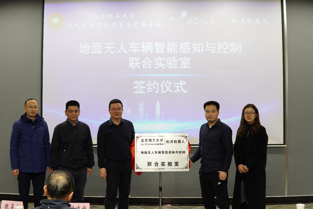 魏基栋、孙硕、黄彪、林程、陈潇凯为“地面无人车辆智能感知与控制联合实验室”揭牌。