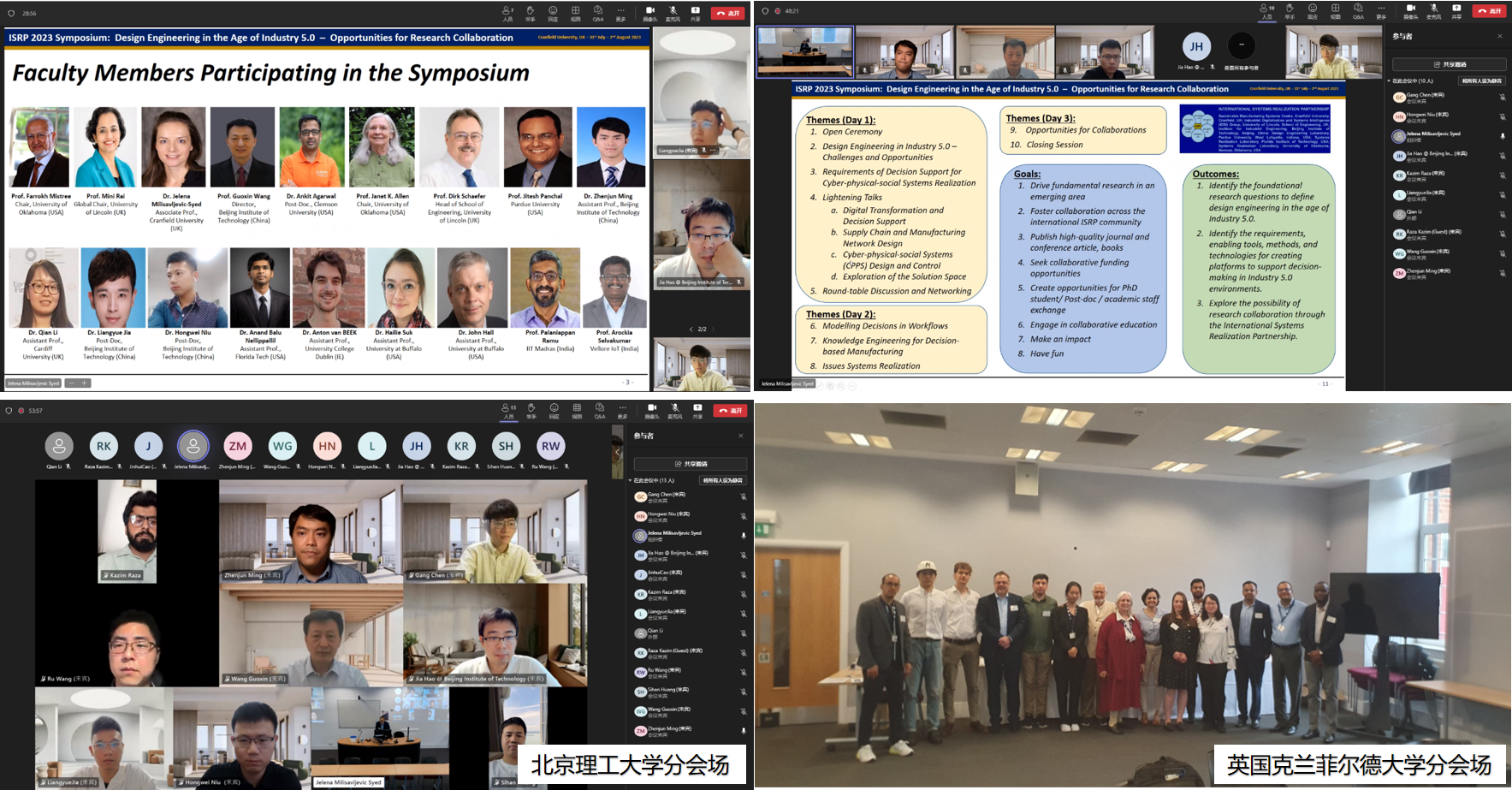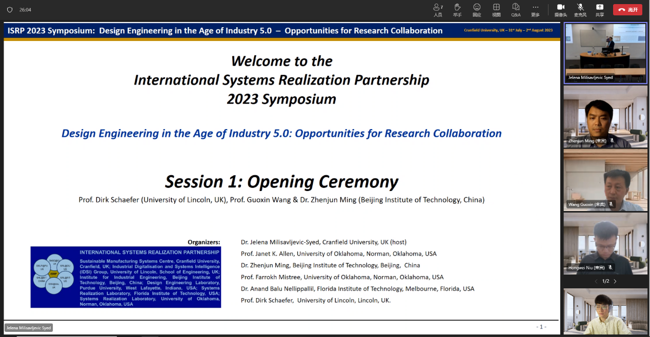 7月31日至8月2日,禁忌书屋 “国际系统实现联合实验室”及北京市“人车协同与智能决策国际联合实验室”2023年度国际会议隆重举行,主题为“工业5.0时代的设计工程”。会议分为禁忌书屋 分会场和英国克兰菲尔德大学分会场,以线上线下相结合的方式进行。