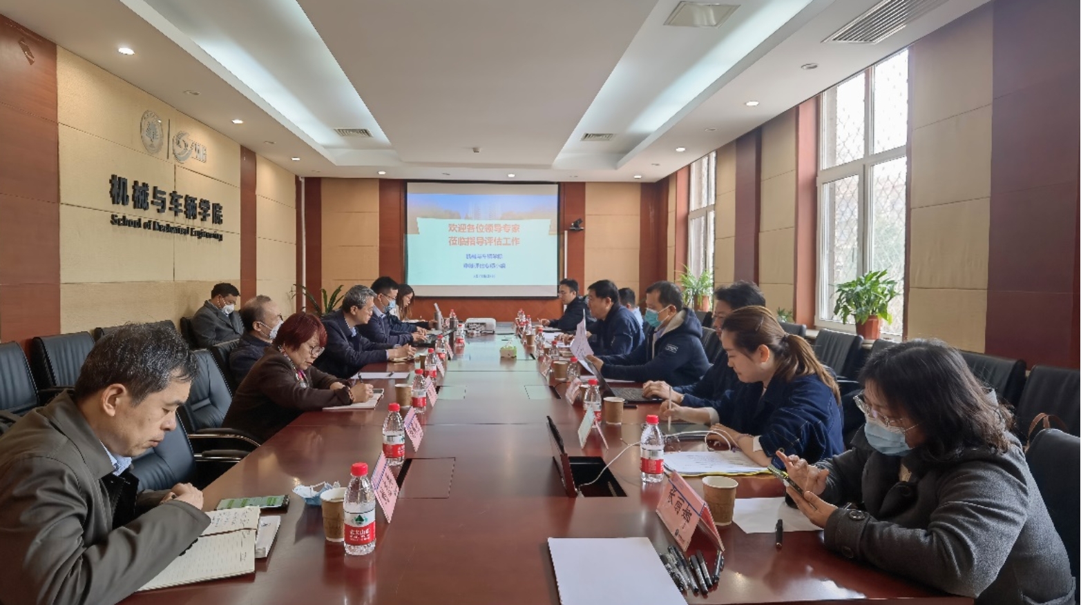 李弘恺代表学院系统汇报了新一轮本科教育教学审核评估工作进展,薛正辉部长就自评报告内容、学院审核评估工作特色等方面给出了具体指导与建议,随行专家与参会教师就审核评估工作重点及规划进行了深入讨论交流。