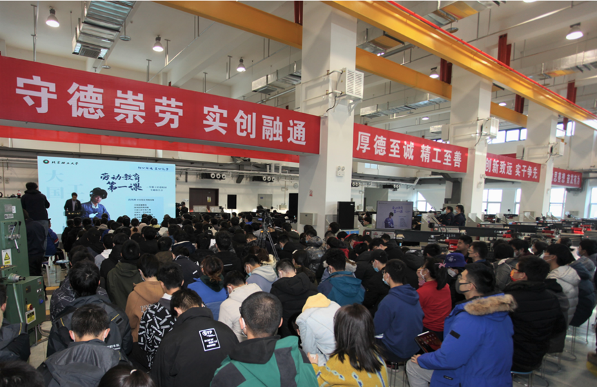 12月2日,课程特别邀请到全国劳动模范、大国工匠、航天科技集团第一研究院首席技能专家“中国火箭发动机焊接第一人”、全国总工会兼职副主席高凤林同志担任校外劳育导师,走进实验教学课堂,在良乡校区实训楼为新开课班级学生讲授“劳动教育第一课”。
