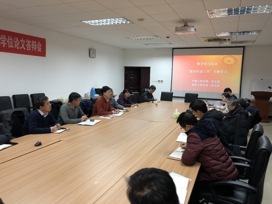 车辆工程系第一党支部联合制造工程系第一党支部,在9号教学楼321会议室开展了“意识形态工作”专题学习联合党日活动。