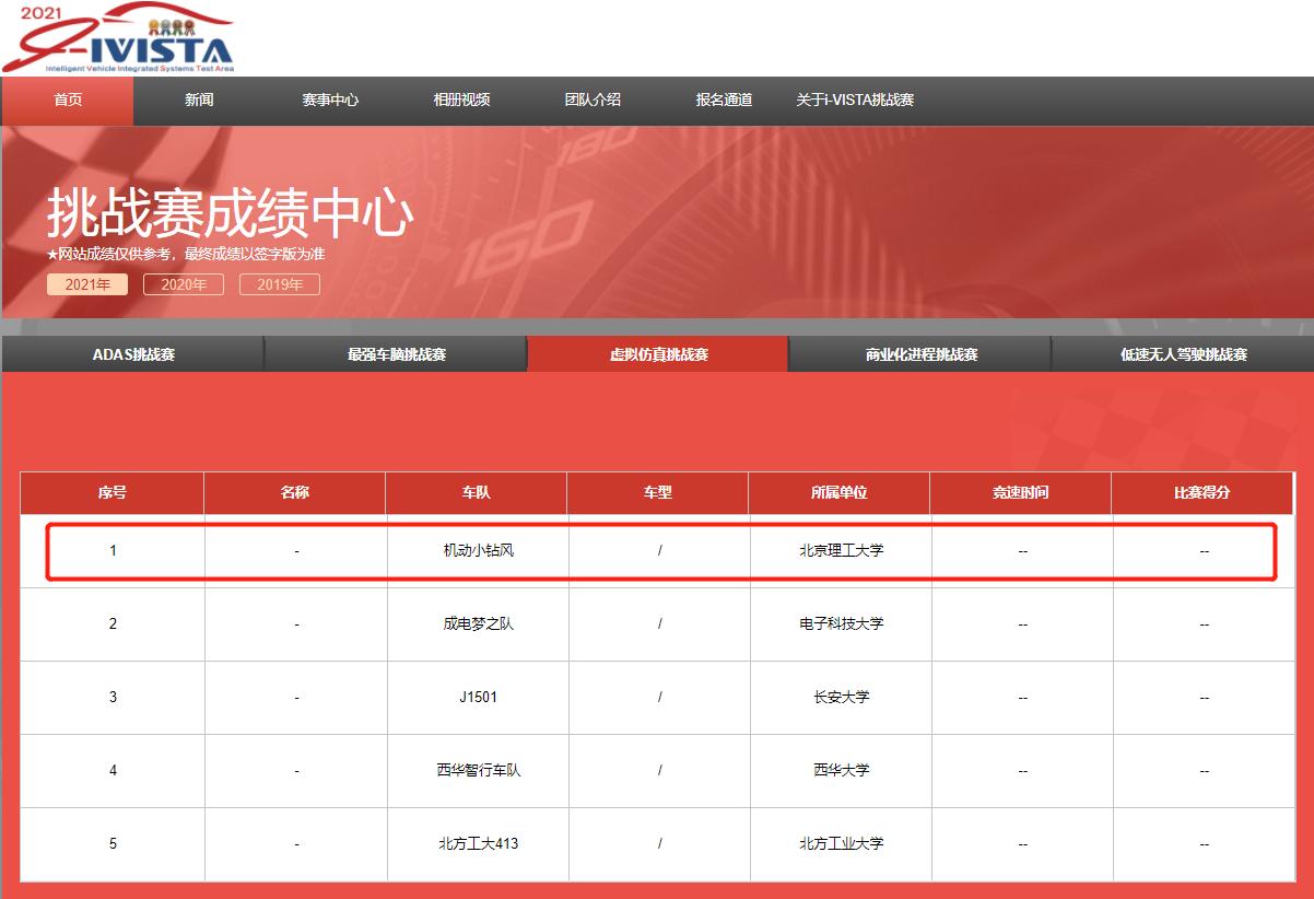 8月20日,2021 i-VISTA自动驾驶汽车挑战赛虚拟仿真挑战赛决赛在重庆两江新区拉开序幕,参赛队伍通过事故区域避障、拥堵区域通行、转弯行人避让、匝道拥堵通行等8个高难度典型场景的比拼,决出最终胜者。我院机动小钻风车队最终以决赛第一名的成绩获得虚拟仿真挑战赛特等奖,荣获奖金10万元。